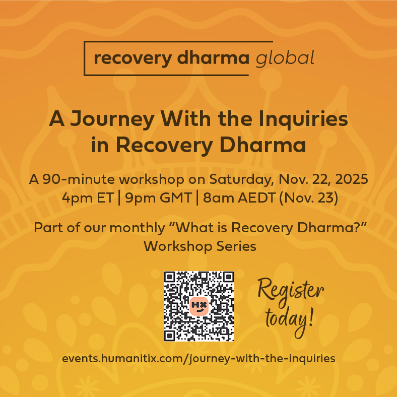 Recovery Dharma invites the global community to join November’s online workshop: A Journey With the Inquiries in Recovery Dharma. This 90-minute workshop will take place on Saturday, Nov. 22, starting at 4:00pm ET (9pm GMT, 8am AEDT on Nov. 23). This is a free event!